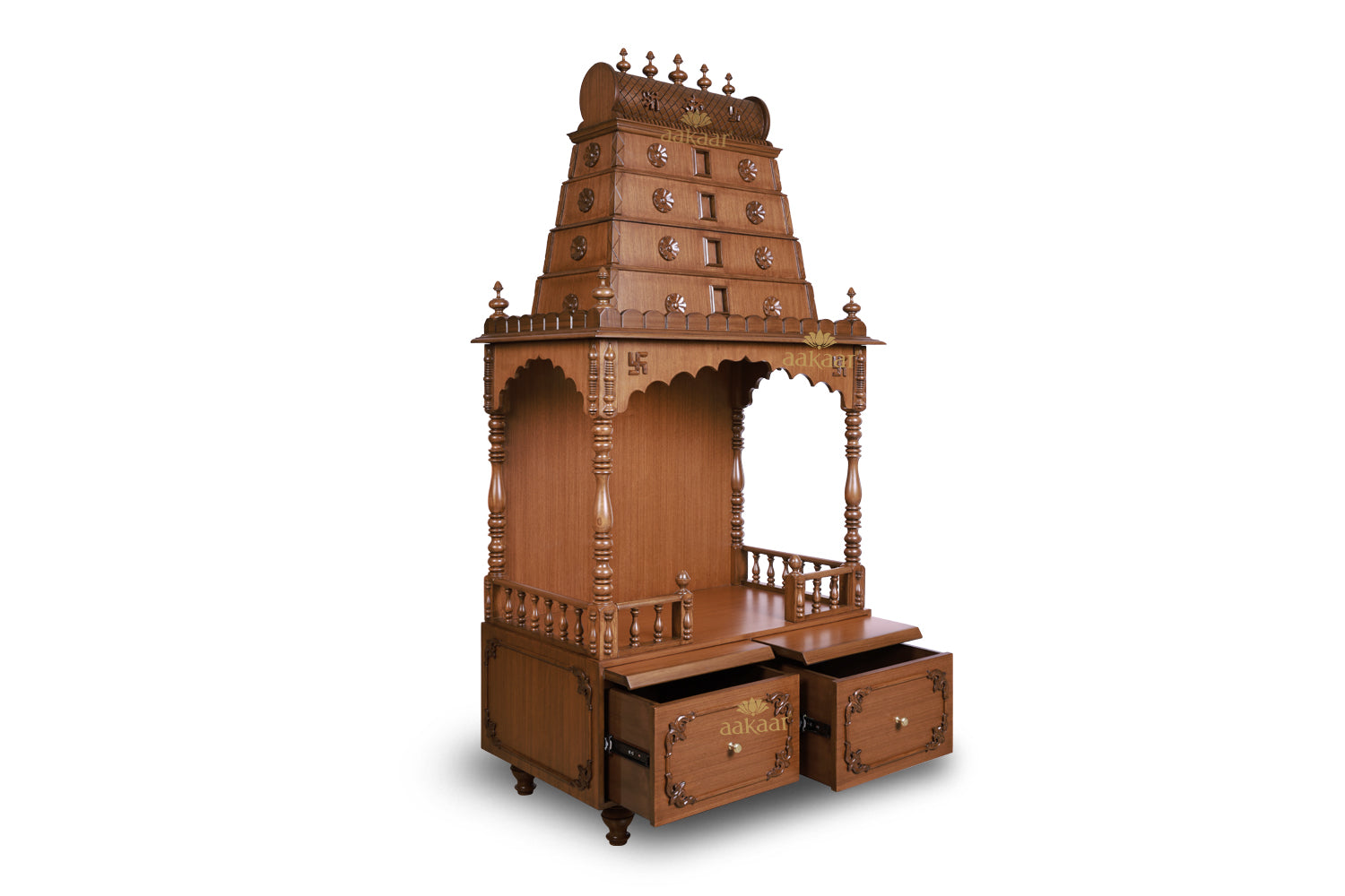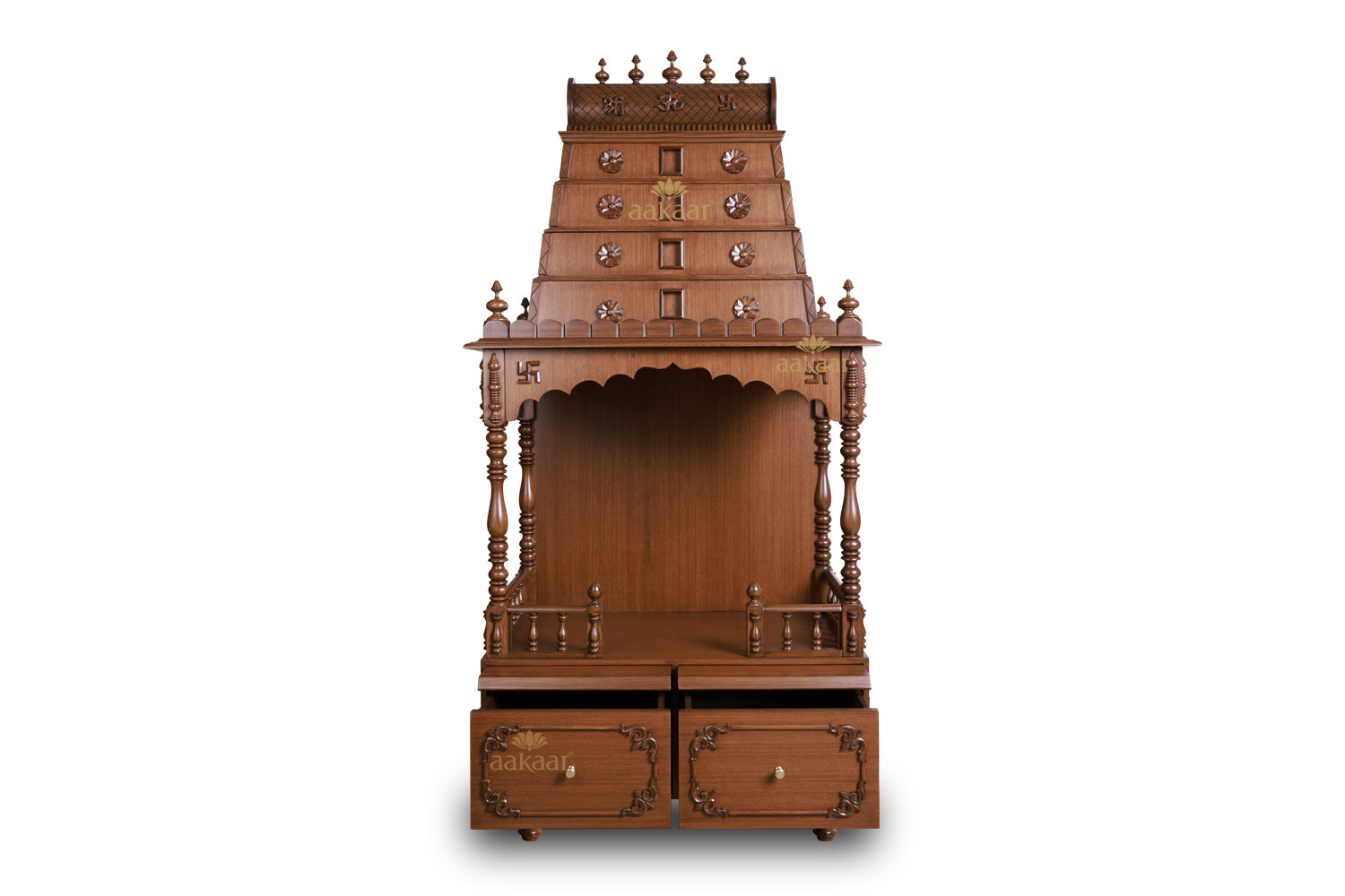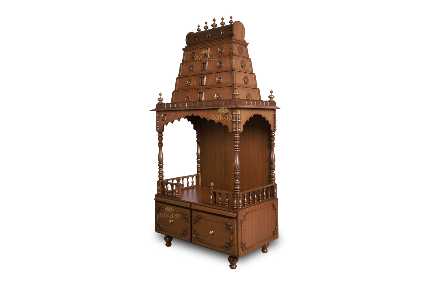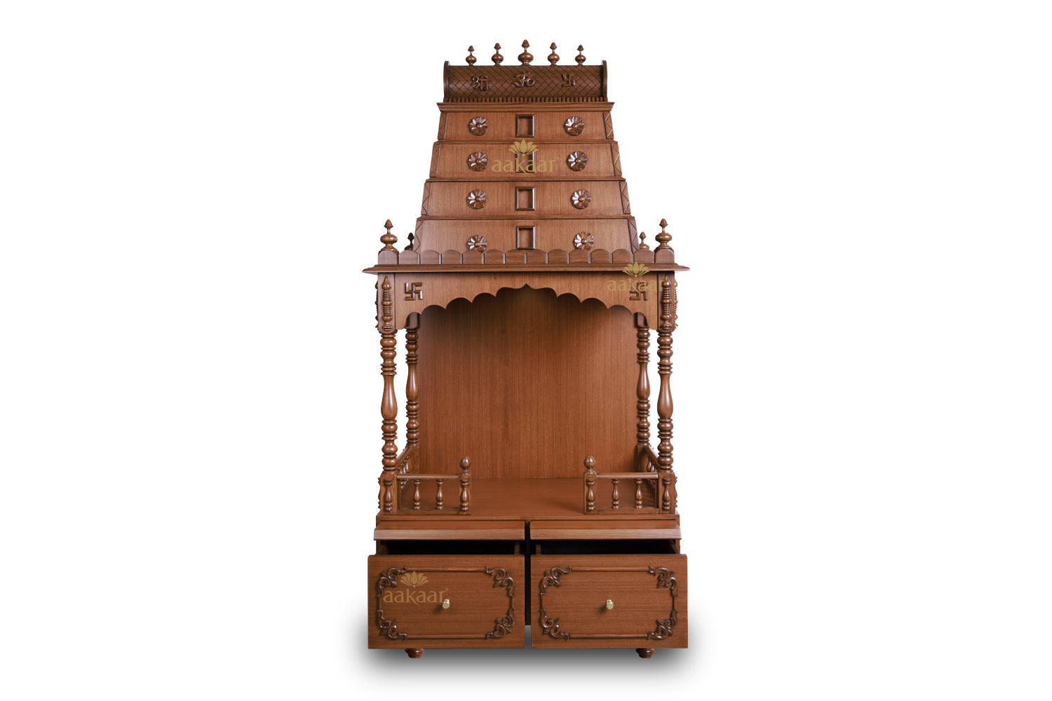 Bring home an exquisitely hand-crafted wooden pooja temple from AAKAAR IDOLS & TEMPLES. Since 1979, the brand Aakaar is devoted to intricate craftsmanship and has come to be synonymous with trust & quality. For almost four decades our wooden temples have been adorning the homes of our clients around the world, who have rated us as the best in the industry. These several thousand satisfied customers are a strong testament to our quality and design.