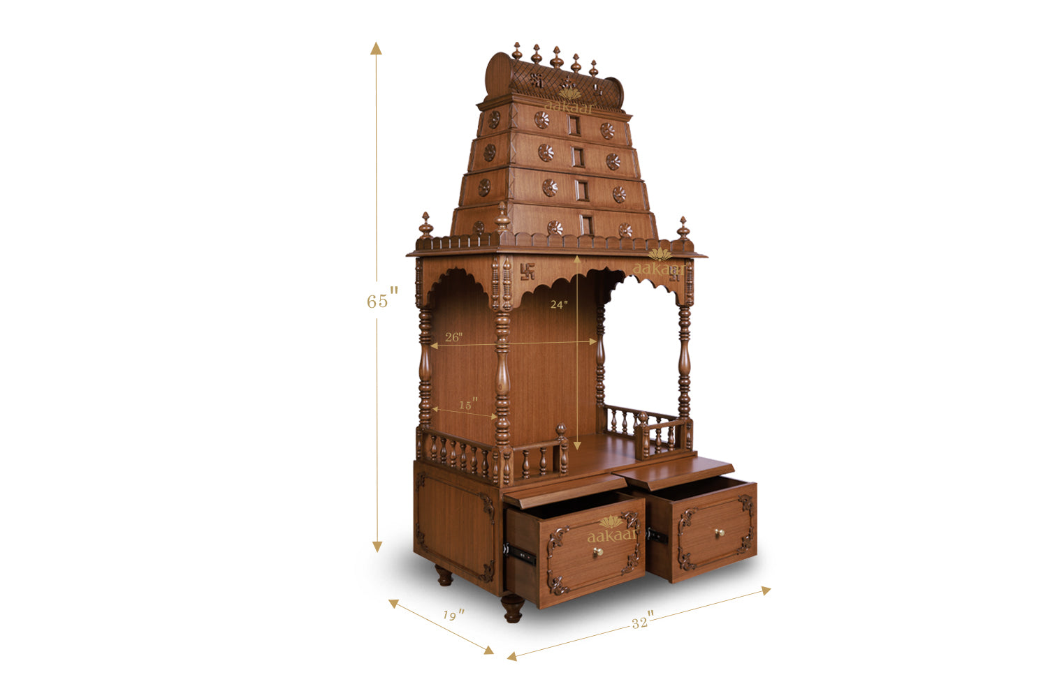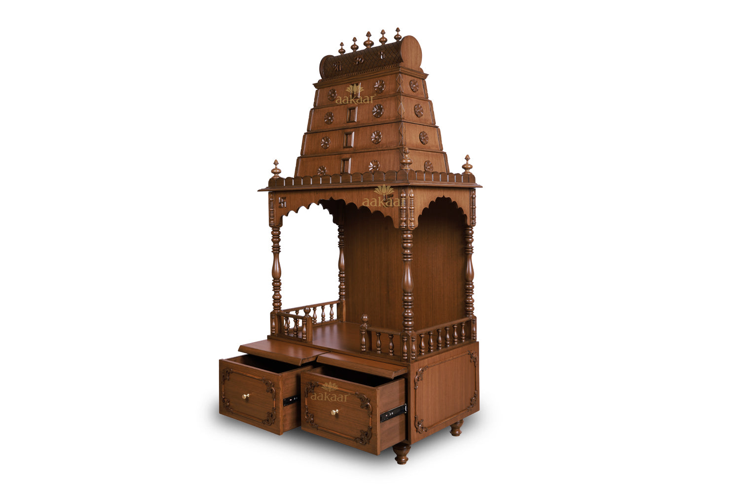 Wooden Pooja Mandir with Gopuram for South Indian Home - 30 MEE